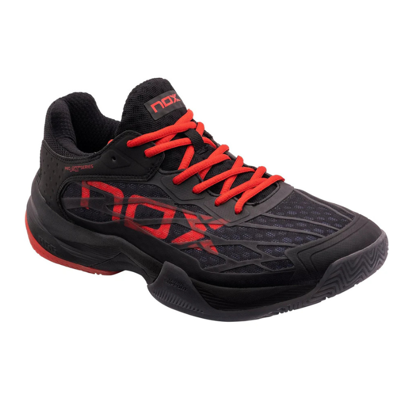 La chaussure NOX AT10 LUX ROUGE ET NOIR allie innovation et performance pour les joueurs exigeants. Conçue avec des matériaux légers et résistants, elle offre un maintien optimal et une excellente stabilité sur le terrain. Sa semelle assure une adhérence parfaite pour des mouvements rapides et précis. Ce modèle garantit confort et durabilité, parfait pour améliorer votre jeu en toute confiance.